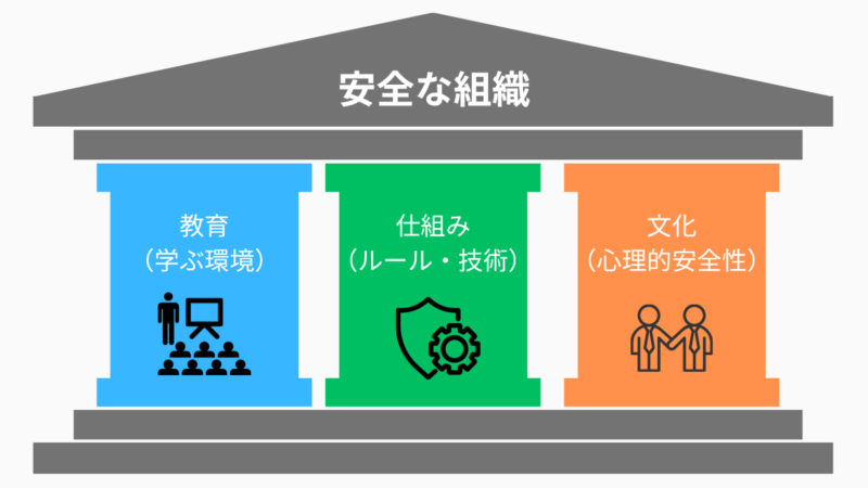 教育・仕組み・文化 の3つを揃えてリスクを下げていくことが重要です。